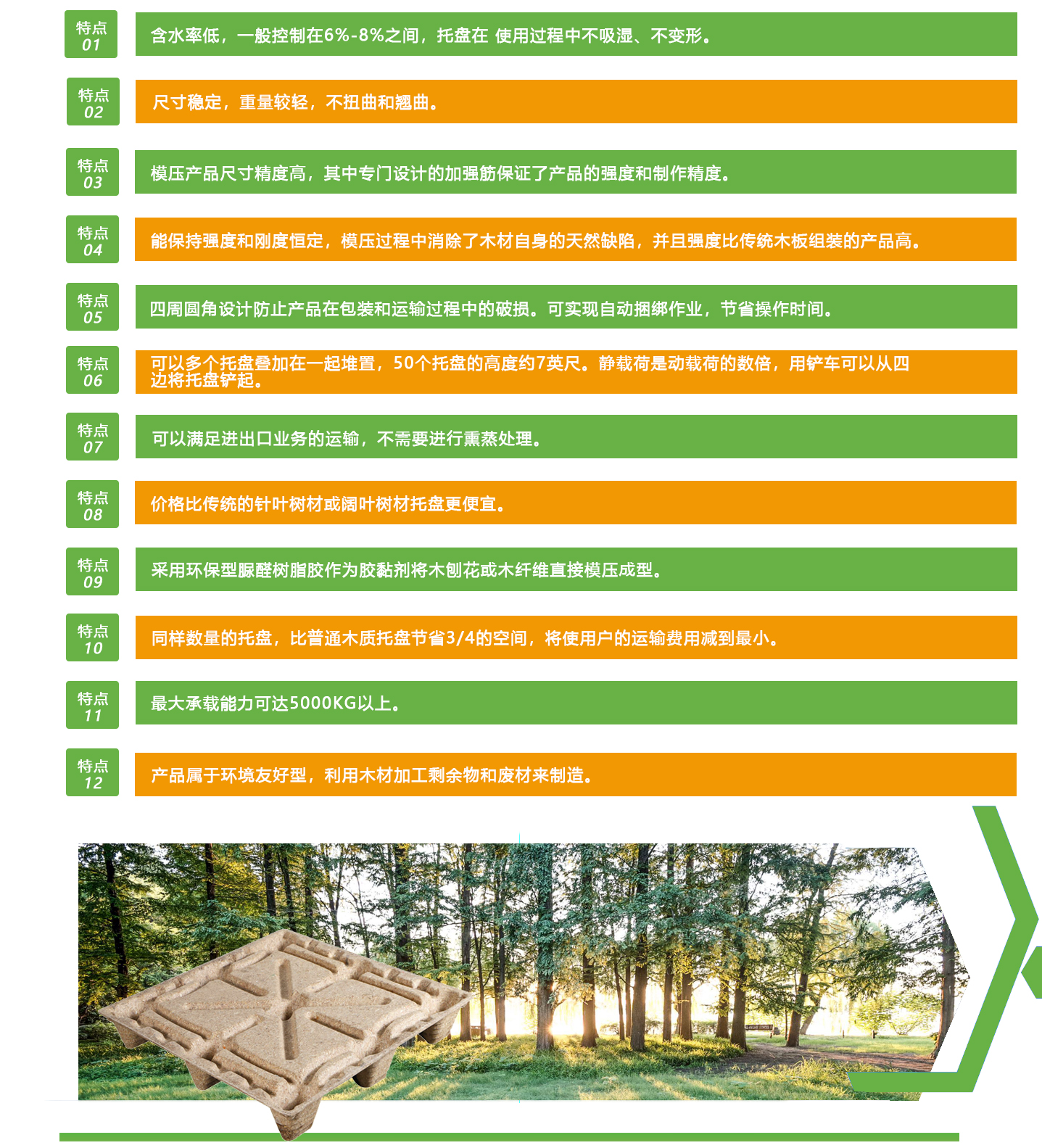 托盤用途十分廣泛,適合化工、電 氣、五金、建材、食品、家具和機械等 產(chǎn)品連同貨物一起包裝、運輸、周轉(zhuǎn), 特別適合貨柜車(集裝箱車)??捎糜?機械化裝卸作業(yè)的火車、汽車、飛機和 輪船等。也可以用作碼頭、商場、倉庫 和貨物堆垛的墊板,是倉儲、出口、物 流的理想工具。